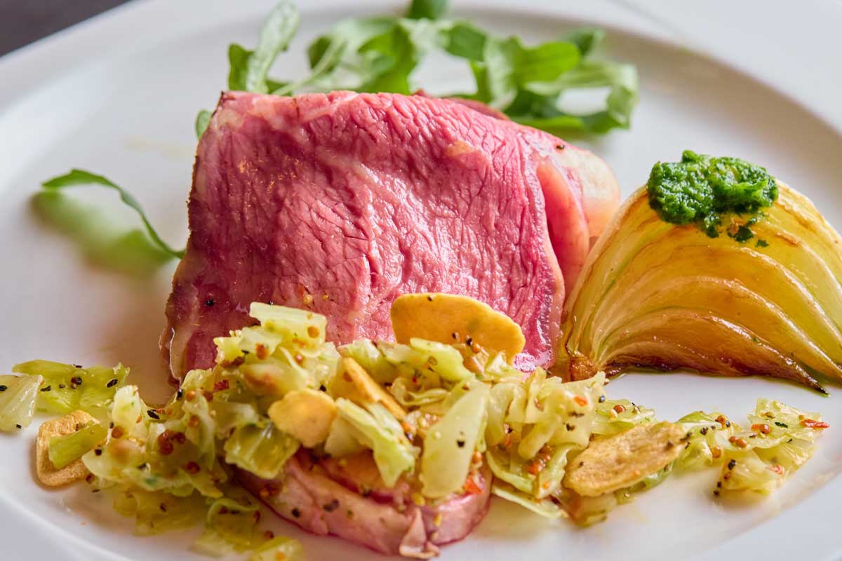 鉄板で香ばしく焼き上げる海老のハーブソテーに、カリッとしたポテトガレットとアスパラのクリームソースが春の彩りを添えるライブキッチン。 オーブンでふっくら仕上げたイタリアンチーズハンバーグには、トマトと卵のやさしいソースをたっぷりと。 一度食べたら人に言いたくなる伝統のローストビーフが並ぶ、心弾む春のご褒美ランチ。