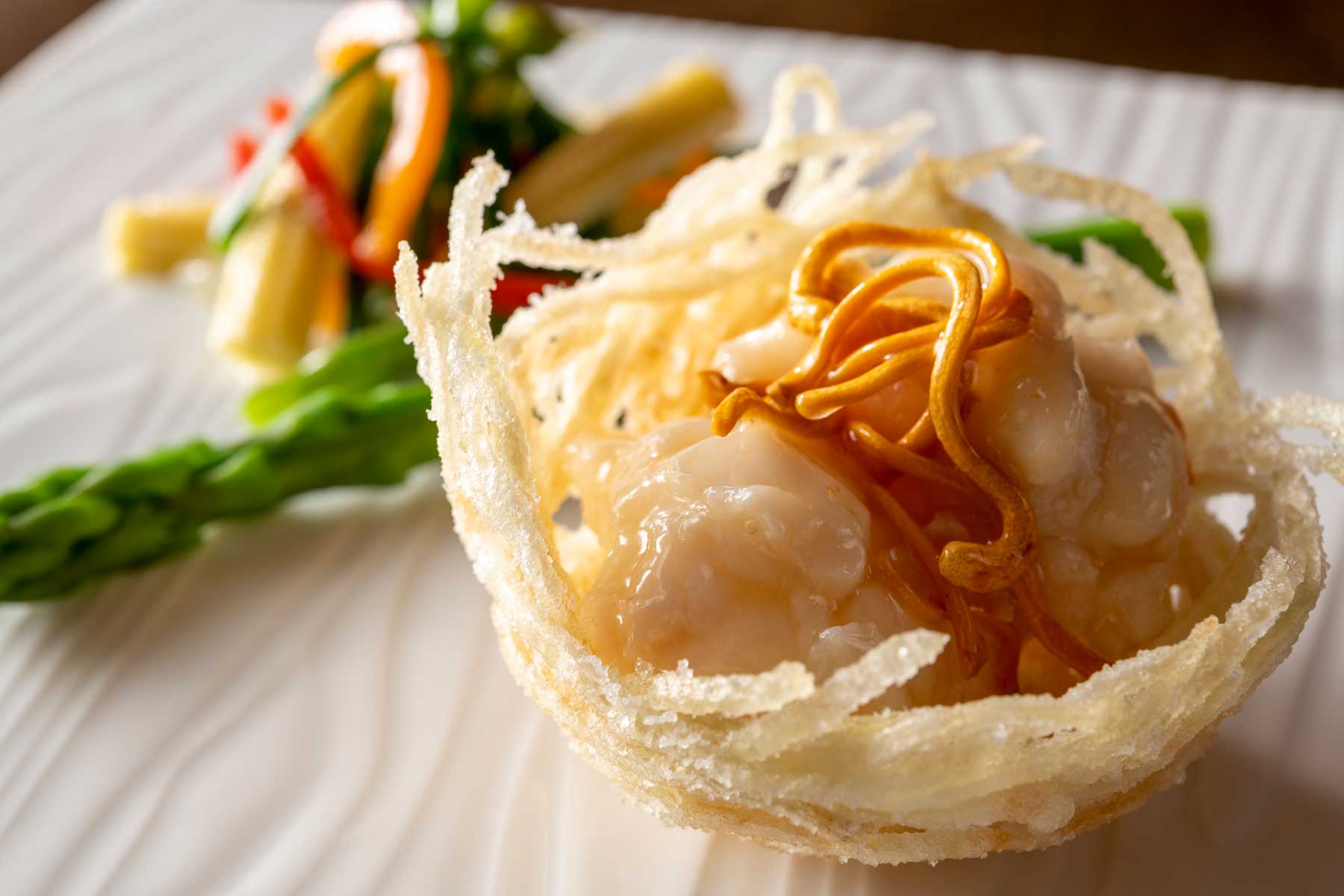 期間 1/1(祝木)~1/3(土) ■花閒式新春前菜盛り合わせ ~こだわりの鮑やクラゲの冷製と広東式焼き物をご堪能ください~ ■干し貝柱と蟹肉入りふかひれスープ ■海老蒸し餃子・ふかひれ入り蒸し餃子・小籠包の三種せいろ蒸し ■オマール海老の子魚豆豉醤蒸しと帆立貝柱の卵白炒め 巣籠もり仕立て ■牛フィレ肉のオイスターソース炒め ■自家製XO醤の蓮の葉蒸しおこわ ■南杏・北杏のプレミアム杏仁豆腐 薔薇の香り ■揚げ胡麻団子 料金 12,000円