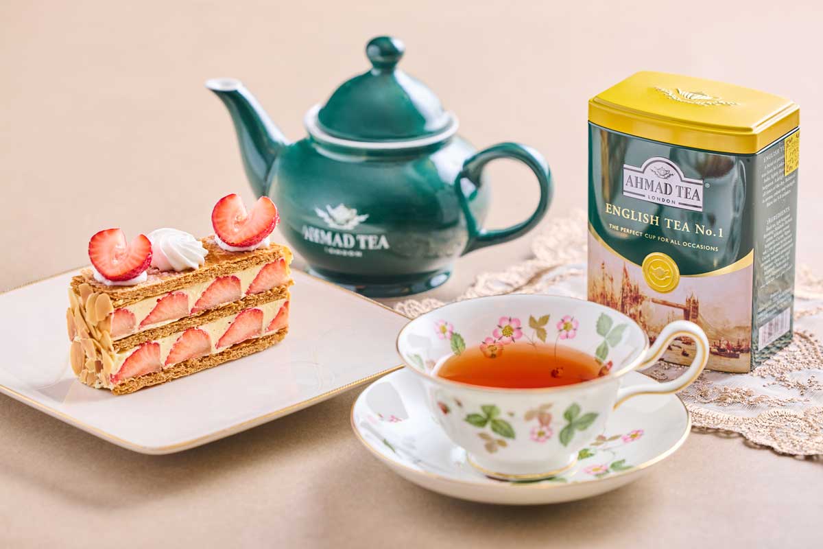 バターの香り豊かなパイと口どけなめらかなカスタードクリームが、苺の甘酸っぱさを引き立たせる贅沢なミルフィーユ おすすめ紅茶のペアリング "AHMAD TEA" イングリッシュティーNo.1 ※12/20(土)~12/25(木)は販売除外日となります