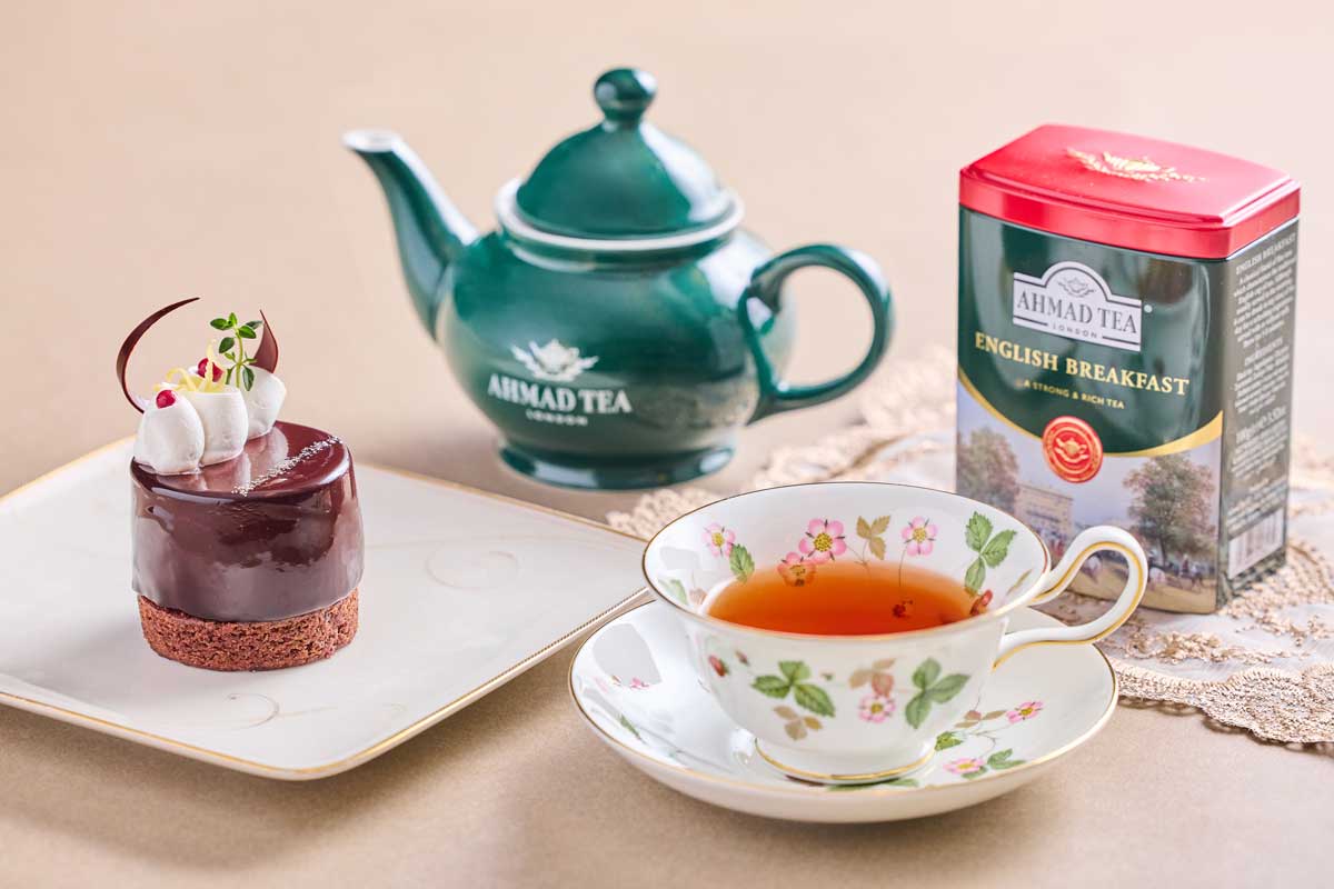 口溶けなめらかな食感のチョコムース、酸味の効いたレモンのジュレとクレームを合わせた逸品 おすすめ紅茶のペアリング "AHMAD TEA"イングリッシュブレックファースト ※12/20(土)~12/25(木)は販売除外日となります
