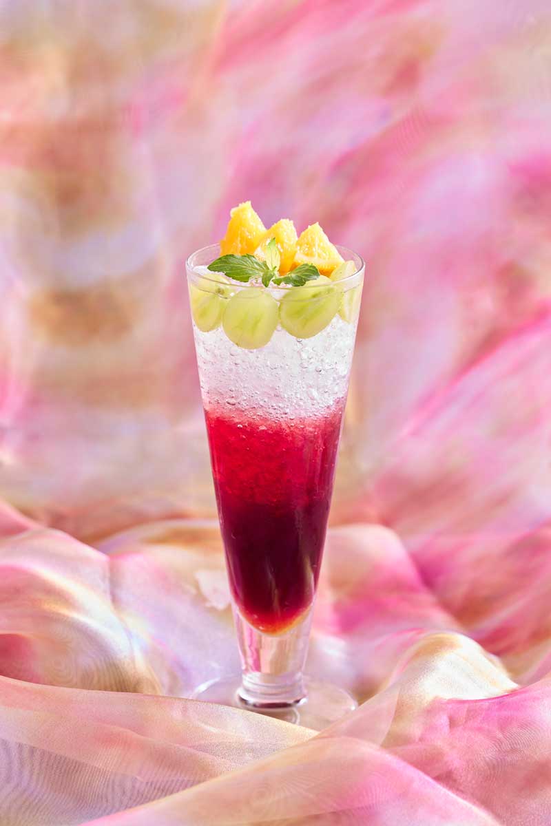 ハロウィンパーティーをイメージして、 紫をベースに、フルーツのトッピングでアクセントを添えました。 りんごの甘みとぶどうの酸味が絶妙にマッチした、 見た目にも味わいにもこだわった一杯。 期間 : 10/1(水)~10/31(金) 料金 : 1,300円